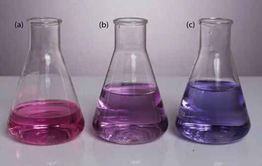 Ребята учились работать с бюреткой, точно отмерять реактивы, фиксировать момент изменения окраски индикатора (рисунки a, b, c).